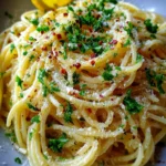 This pasta is beloved because it’s fast, flavorful, and flexible. The garlic is sautéed to perfection, releasing its aroma and creating a rich base for the pasta. Tossed with olive oil, butter, and Parmesan, it becomes creamy and satisfying without heavy cream or complicated steps.