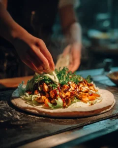 Irresistible Chicken Shawarma Wrap with Garlic Sauce Bold Flavor Wrap is a handheld powerhouse of flavor. The tender, spiced chicken paired with creamy garlic sauce and crisp vegetables creates a wrap that’s satisfying, aromatic, and indulgent.