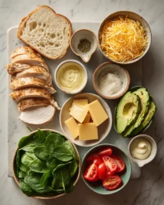Ingredients for Chicken Avocado Melt Sandwich